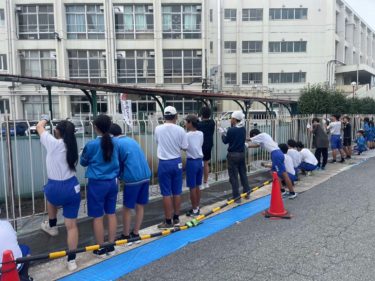 今回は大宮西中学校の50周年記念事業の一環として、生徒達と学校のフェンスを塗装してきました。