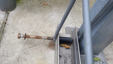 本日の作業は ただいま担当させて頂いているマンションの共用鉄部塗装工事の現場での、駐輪場ラックの支柱ボルト交換作業でした。