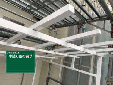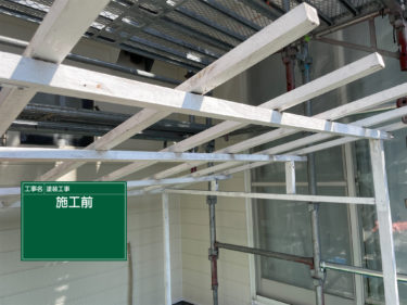 昨日のお話なのですが、お客様宅の手作りであろう普段自転車置き場にしている波板の木枠を塗装する作業をしておりました!