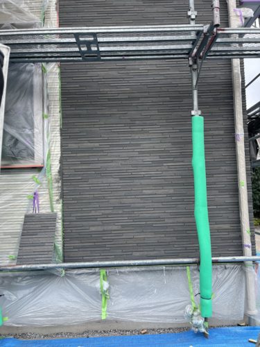 新築時の外壁の柄を再現 【ニチハ パルムボーダー調GS パルム MGブラックE】 【外壁塗装 越谷市 埼玉】