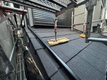屋根カバー工法工事と新規トイ取り付け等足場絡みの作業が完了し今週半ばに足場解体を予定しています。