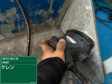 ↓既存塗膜が全く密着しておりませんでしたので剥離剤を使って剥がしていきます