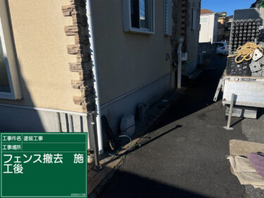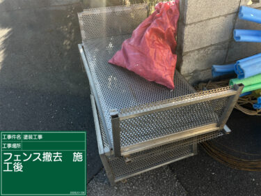 足場設置前に外構既存フェンス撤去