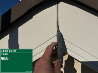 ↓破風板、鼻隠し他各所既存シーリングを撤去打ち替え