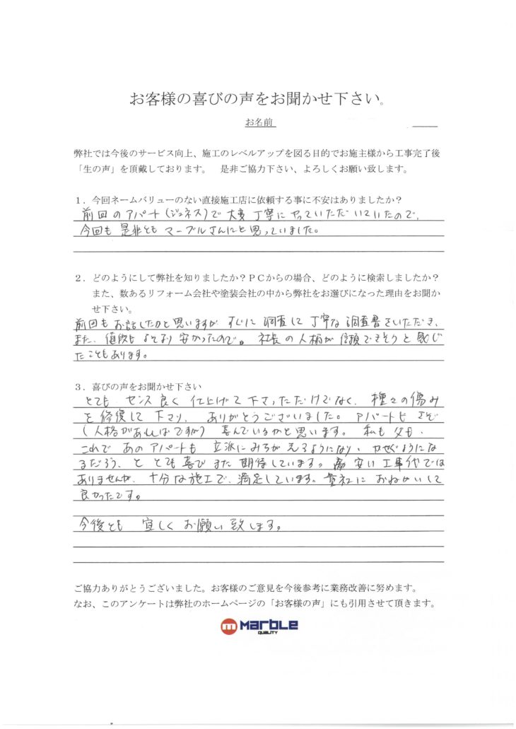 前回のアパートで大変丁寧にやって頂いていたので、今回も是非ともマーブルさんにと思っていました。