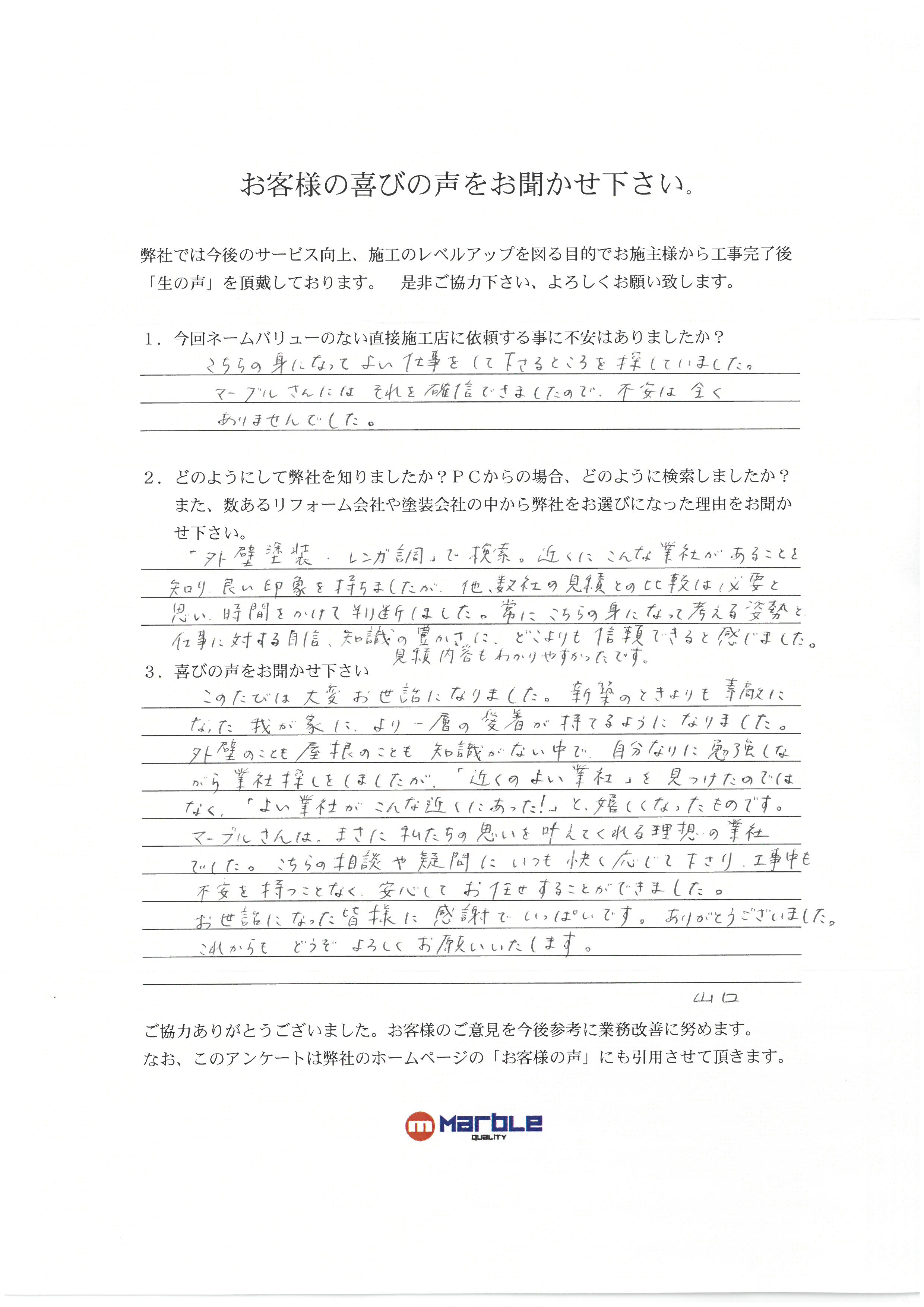 マーブルさんはまさに私達の思いを叶えてくれる理想の業者でした。
