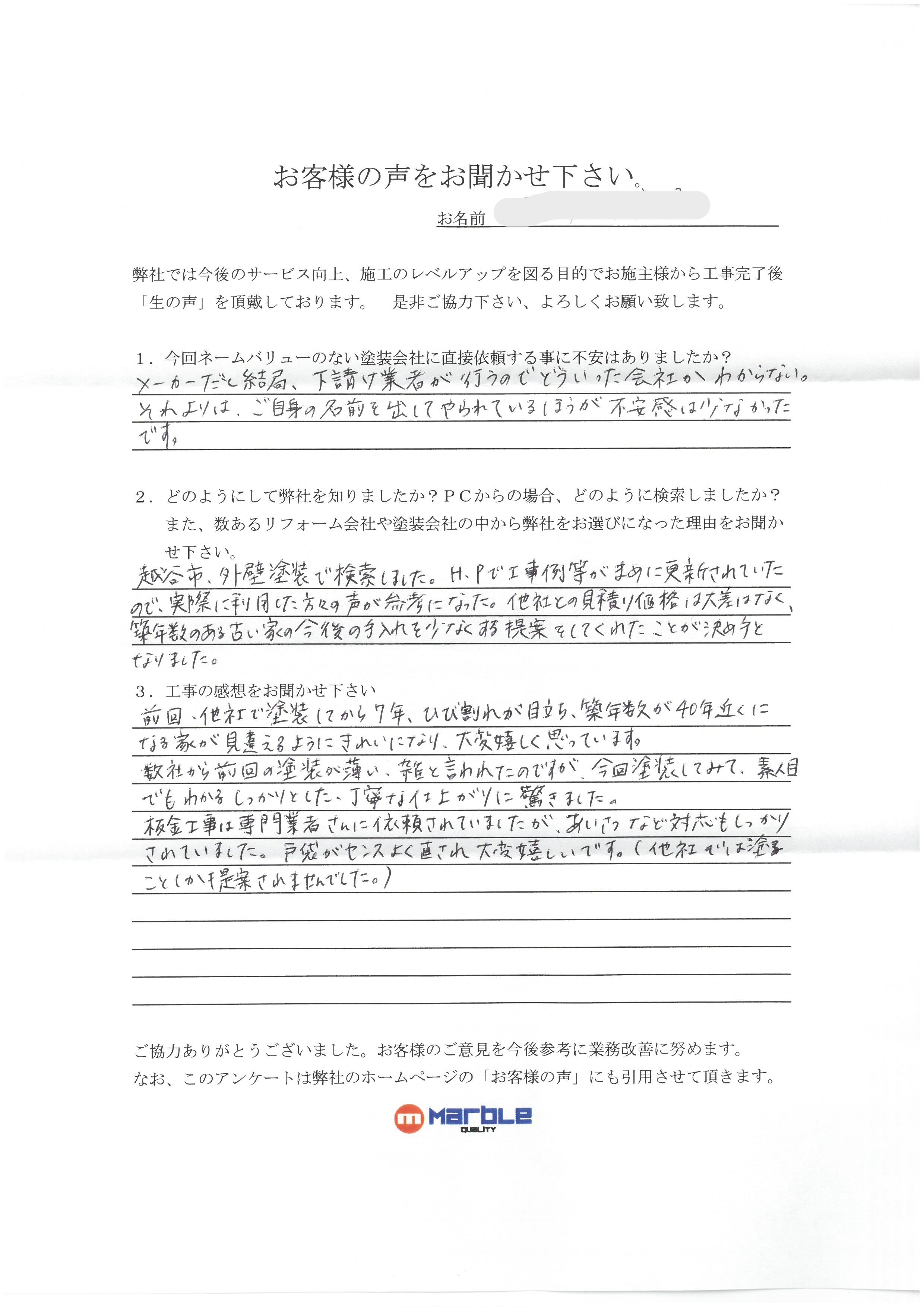 越谷市上間久里 I様の声