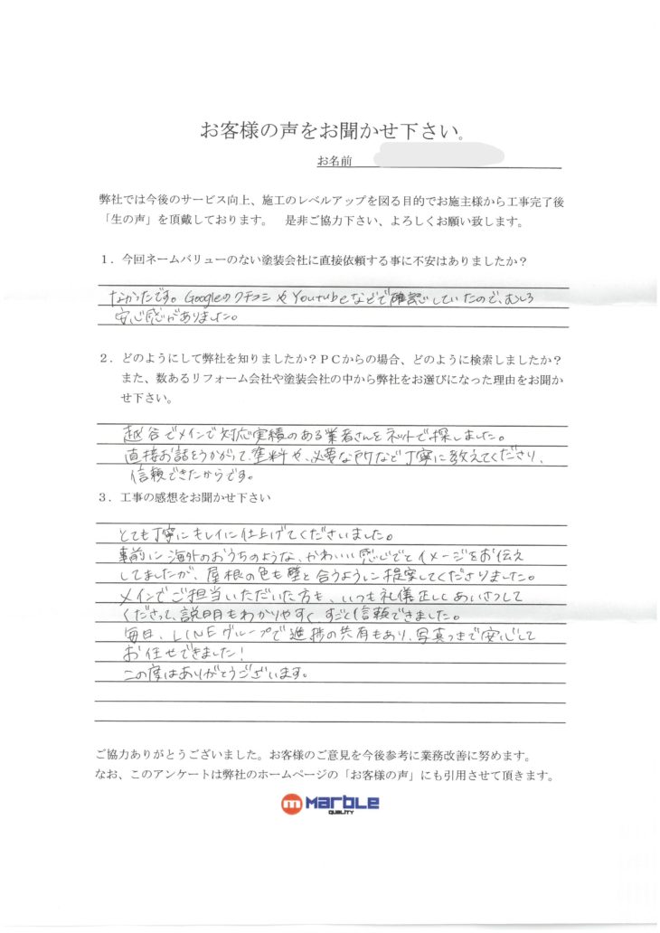 どの様にして弊社を知りましたか?PCからの場合どの様に検索しましたか?また、数あるリフォーム会社や塗装会社の中から弊社をお選びになった理由をお聞かせください。