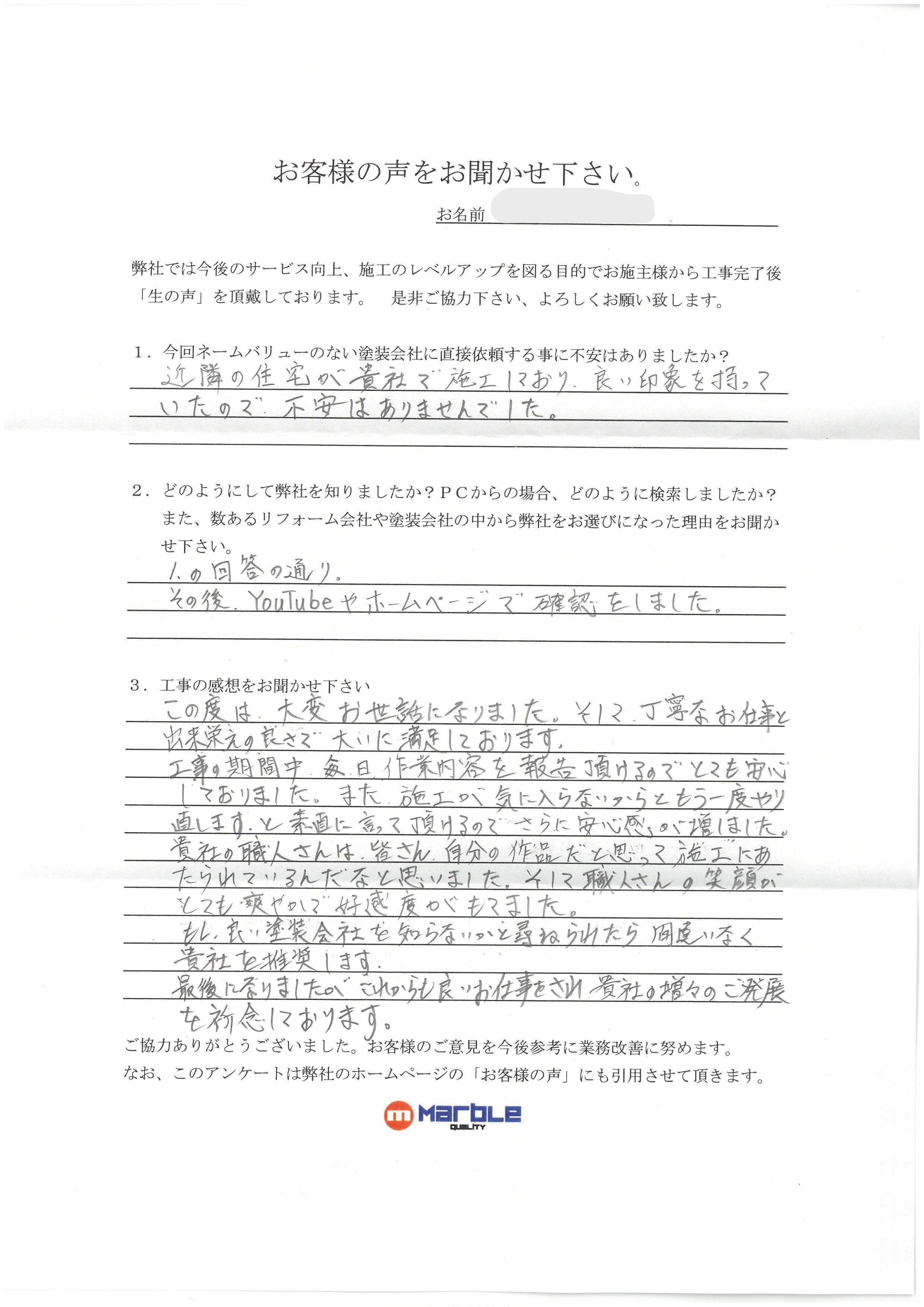 もし、良い塗装会社を知らないかと尋ねられたら、間違いなく貴社を推奨します。