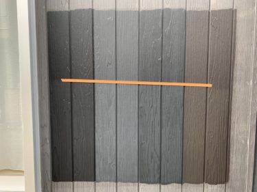 外壁の木目を生かすべく2色塗装も提案しましたがシンプルな単色塗装に決まりました。 艶有り塗料では現在の質感を損なうのでマットな仕上がりのナノコンポジットWにてご提案致しました。 |