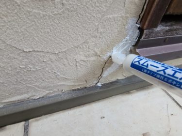 各所下地補修(クラック補修)※モルタル壁で一番重要な作業です。