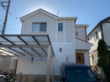 爽やかな白基調でありながら、屋根や雨樋の赤色が良いアクセントになって良い感じに仕上がりました(^^)/