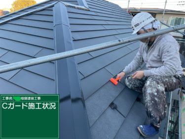 屋根:今回は「シーガード」を採用されました。まず既存の鉄部は塗装処理していきます。