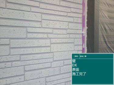 | 使用商材 | 屋根:ワールドセラルーフ遮熱(ダークグレー)、外壁:ナノコンポジットW(単色22-90C、2色凹指定色凸17-90A)、付帯部:ハイパーユメロック、ナノコンポジットW(22-90C、N-90、17-90A)、シーリング:オートンイクシード/その他 |