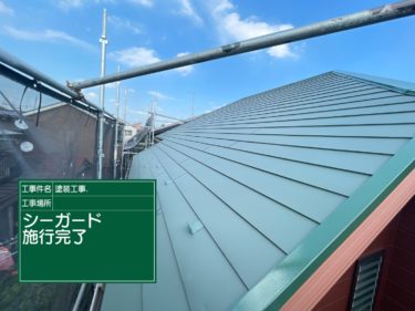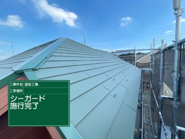 | 使用商材 | 屋根:シーガード(グリーン)、外壁:ナノコンポジットW(09-30D)UVプロテクトクリヤー、付帯部:サンフロンUV(マーブルチョコ)、ナノコンポジットW(09-40H)、その他 |