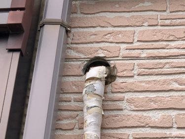 エアコンホース用の穴が・・・これでは雨水が流れ込んでしまいますので、同時にケアして行きましょう。