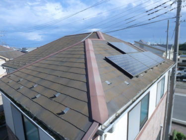 屋根はコケも劣化も著しい状態です。