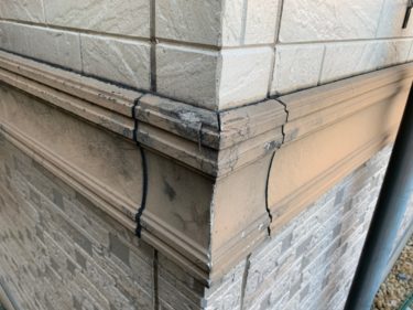 上から流れる雨水が引っ掛かり易い幕板周辺の痛みが激しい状態です。