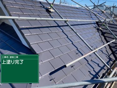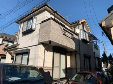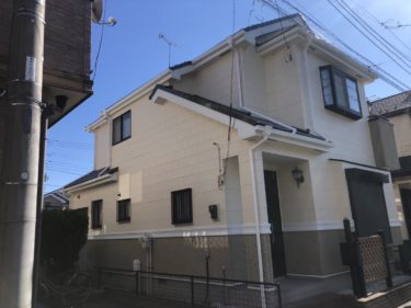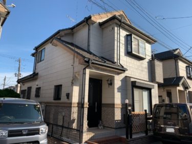 | 使用商材 | 屋根:快適サーモSi(サーモナチュラルグレー)、外壁:単色部ナノコンポジットW(19-85D)レンガ調部ランデックスコートP-5000(各指定色)、付帯部:サンフロンUV、ナノコンポジットW(19-90A)、その他 |