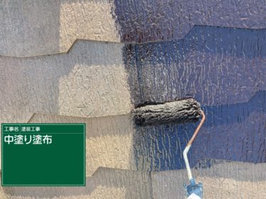 屋根:上塗り塗布1回目
