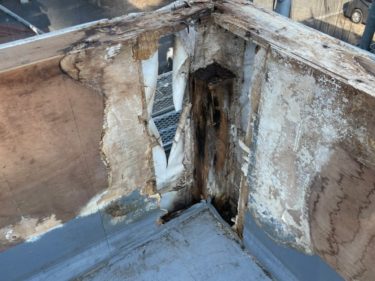 雨漏りしていた箇所の外壁を剥がせばこの通り・・・