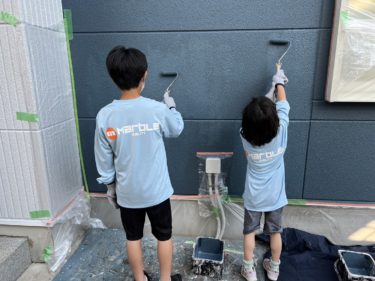 | お客様のご要望 | 耐候性の高いフッ素塗料の使用を希望。 ブルー系の外壁色を希望。 外壁の一部にカルセラを貼りたい。 チビッ子塗装体験を希望。 |
