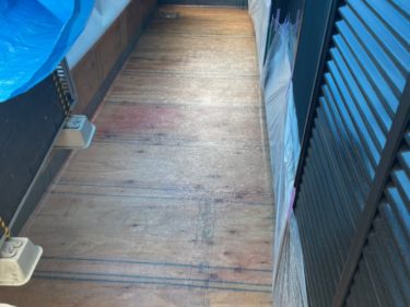 バルコニー床のFRP防水が割れていますので再防水が必要です。
