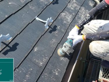 屋根は旧塗膜が脆弱してますので、出来る限り剥がしていきます。