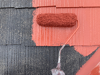 | 使用商材 | 屋根:サーモアイSi(クールローマオレンジ)/外壁:ナノコンポジットW(NC-29)/レンガ調外壁:ランデックスコートP5000/付帯部:ハイパーユメロック(ブラック)/その他 |