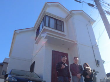 綺麗に生まれ変わったマイホームの前で記念撮影