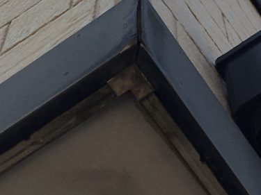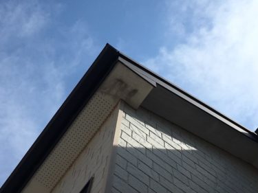 軒天の一部が酷く汚れている状態。構造上の問題ですが、汚れに強い塗料を選定します。